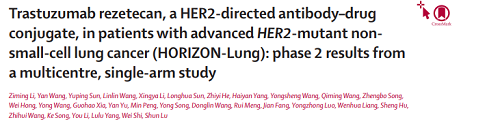 [1].Li, Ziming et al. Trastuzumab rezetecan, a HER2-directed antibody–drug conjugate, in patients with advanced HER2-mutant non-small-cell lung cancer (HORIZON-Lung): phase 2 results from a multicentre, single-arm study. The Lancet Oncology,2025.
